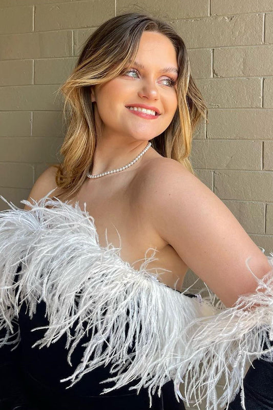 Stylish Sheath Strapless Black Short Homecoming Dress with Feather