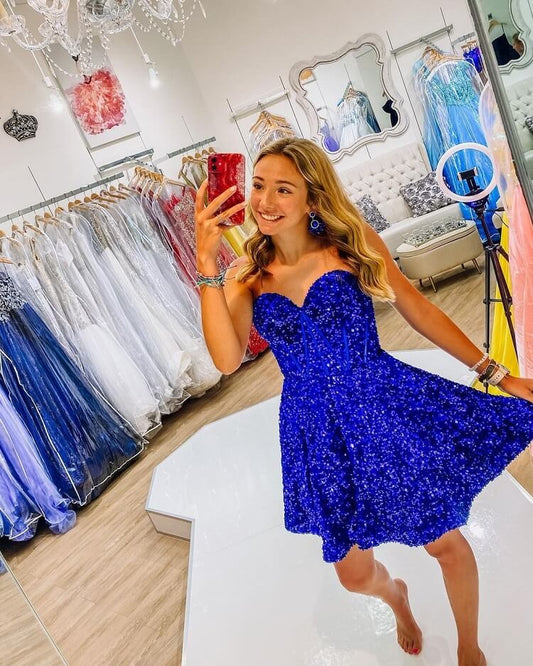 Elegant Royal Blue Sequins Pretty Homecoming Dresses Short