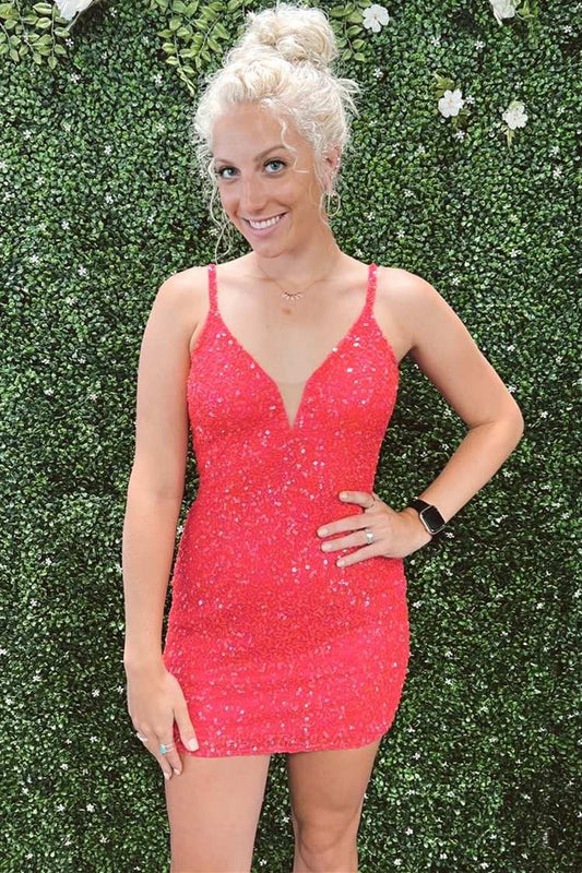 Pink Sequin Homecoming Dress 16th Birthday Bodycon Dresses