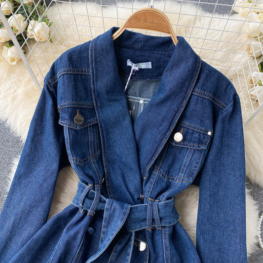Denim Jacket Women's V-neck double breasted 1512