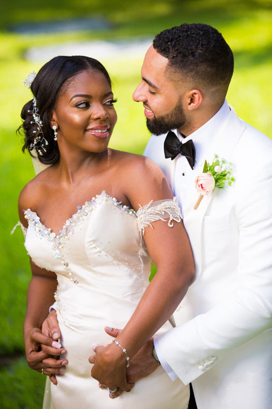 Mermaid Sweetheart Floor Length Satin Beaded Wedding Dresses