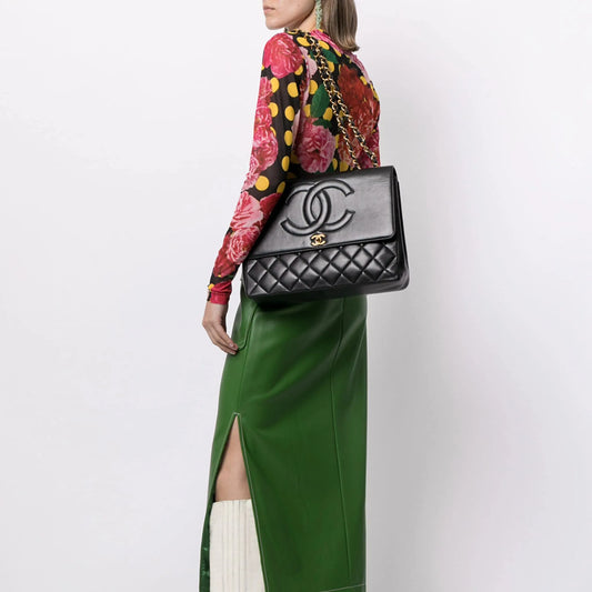 CHANEL Classic Maxi Handbag LAMBSKIN & GOLD METAL