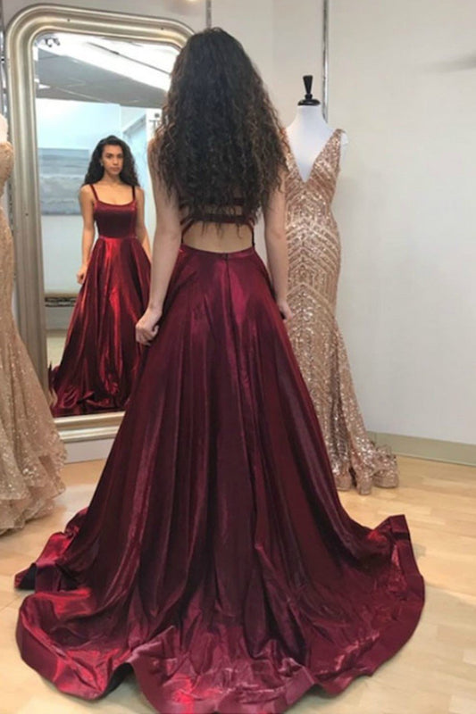 A-line Burgundy Prom Dress with Pockets,Sexy Formal Dress