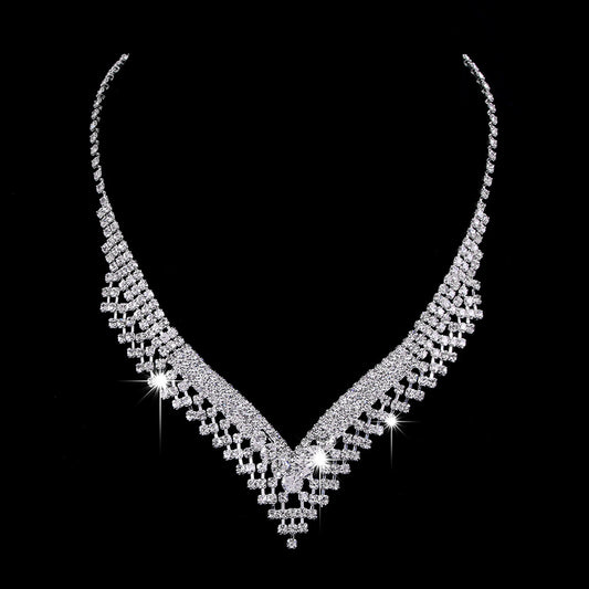 Zircon Necklace Earrings Bridal Wedding Jewelry Set
