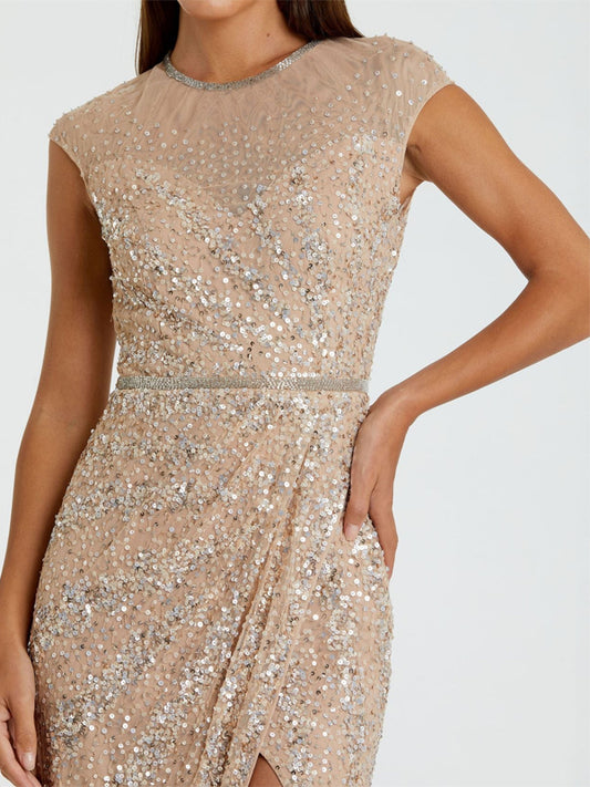 Round Neck Short Sleeve Sequined Mesh Maxi Dress