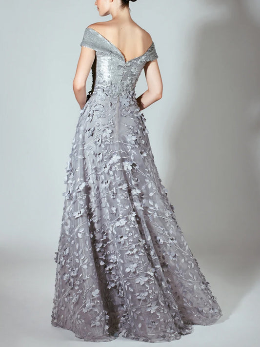 Off-Shoulder Prom Solid Color Similar Maxi Dress
