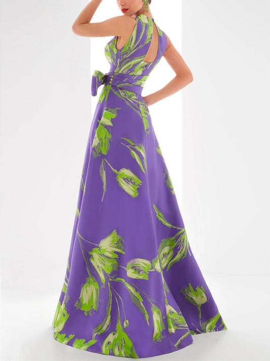 Round Neck Solid Color Long Sleeve Chiffon Maxi Dress