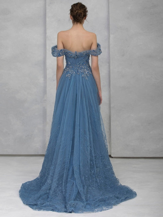 Off-shoulder Lace Solid Color Maxi Dress