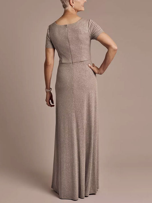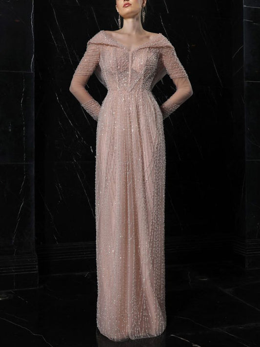 Round Neck Long Sleeve Sequin Solid Color Maxi Dress