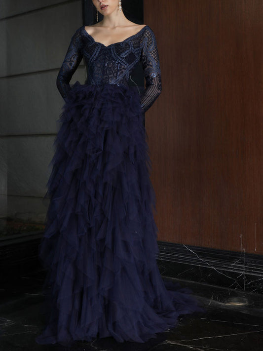 Off-The-Shoulder Sequined Feathers Maxi Dress