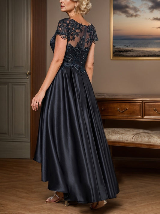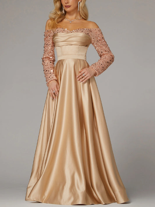 Applique Bateau 3/4 Sleeves Floor-Length Women's Dress