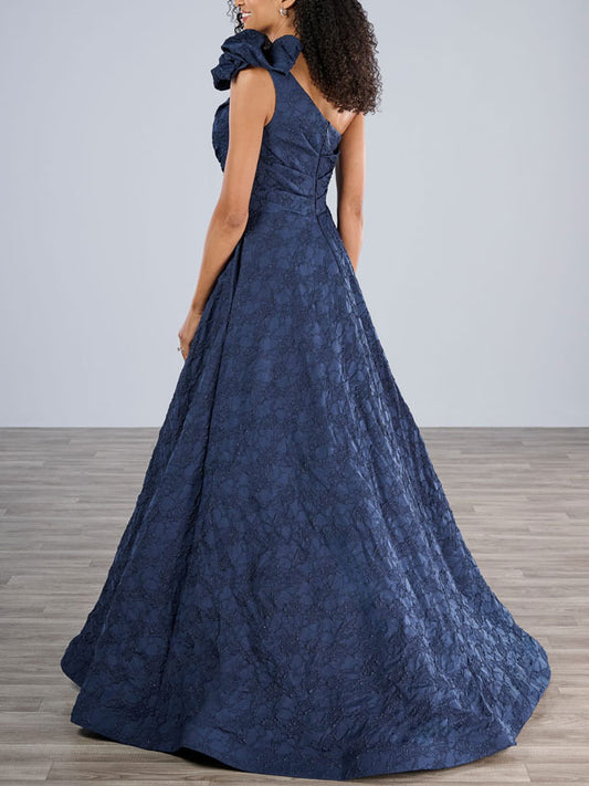 Off-the-Shoulder V-Neck Ruched Lace Gown