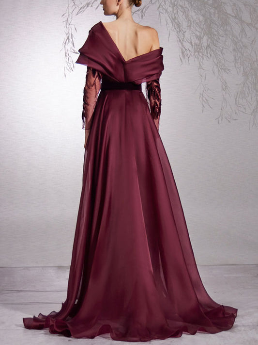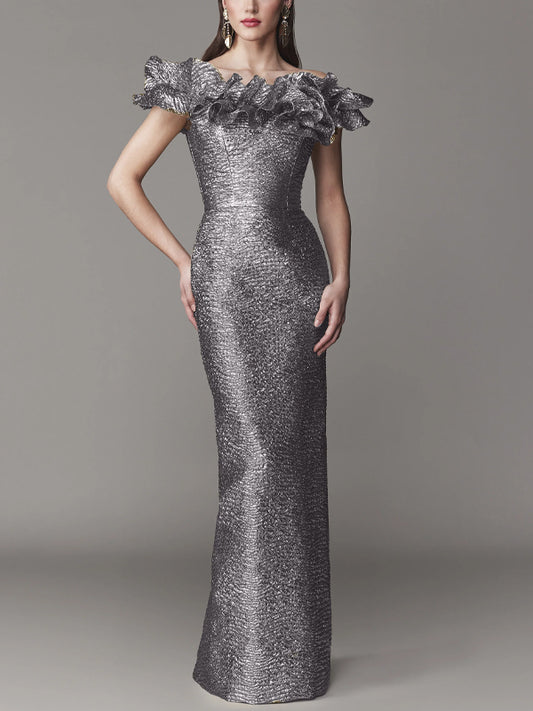 Off-the-shoulder Solid Color Three-dimensional Shape Maxi Dress