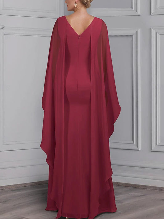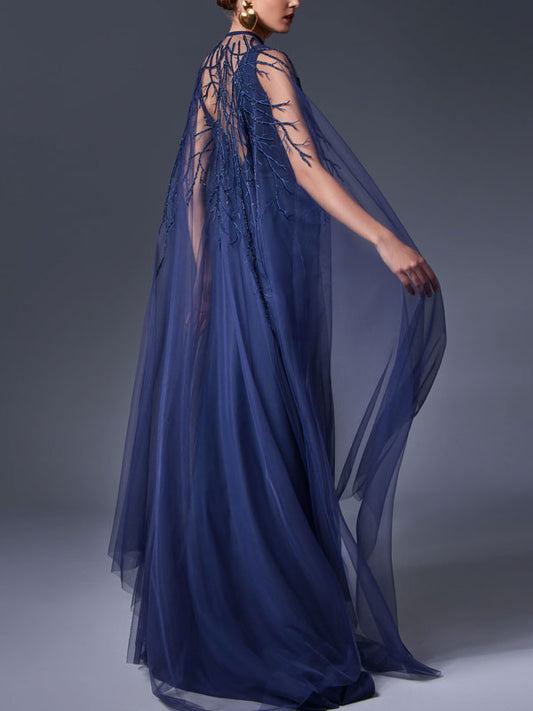 Two Piece Embroidered Cape & Open Slit Draped Dress