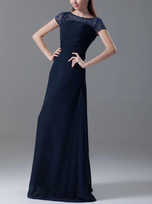 Round Neck Solid Color Short Sleeves Sequins Maxi Dress