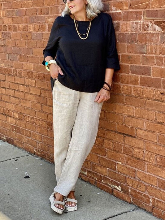 Cotton And Linen Solid Color Trousers