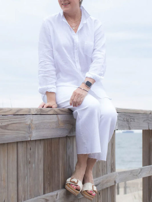 Solid Color Cotton and Linen Elegant Ladies Shirt