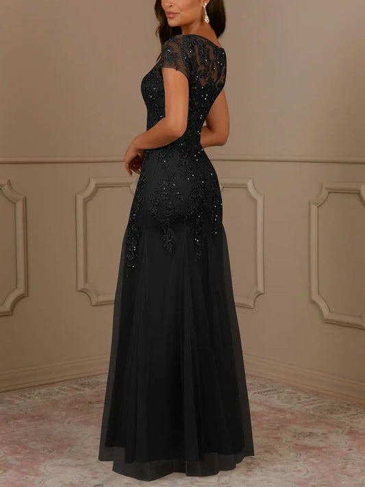 Floral Leaf Ruffle Embroidery Mother of the Bride Dress