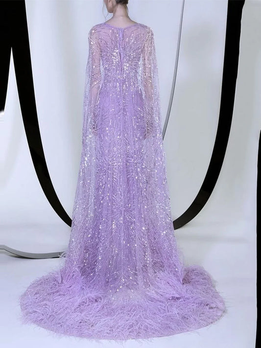 Sequined Off-the-shoulder Long-sleeved Women's Evening Dress
