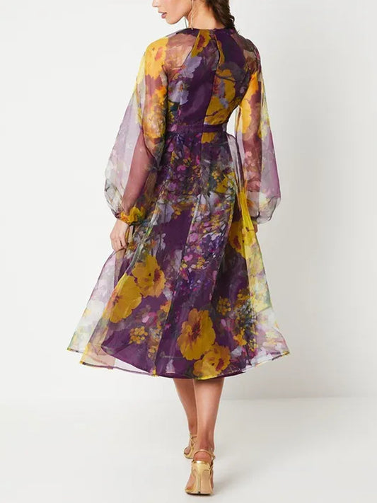 Elegant And Flowing Organza Print Women's Dress