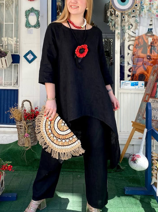 Women's Irregular Hem Cotton and Linen Suit