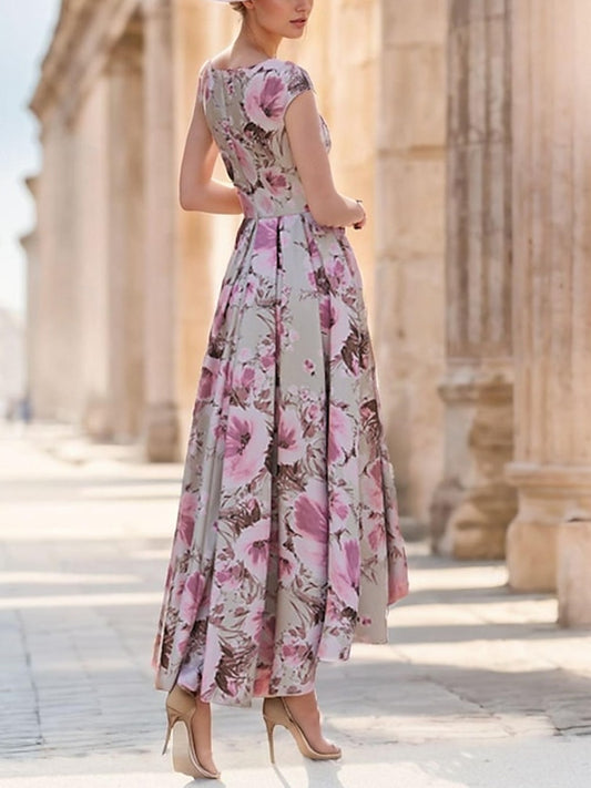A-Line Boatneck Sequins Chiffon Floor-Length Dress
