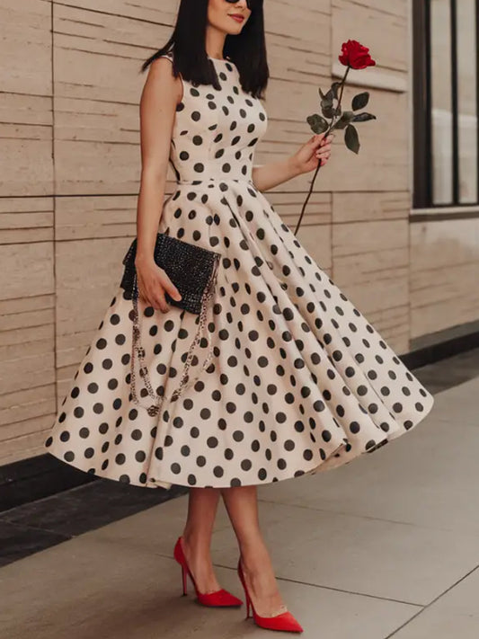 Tie-up Layered Chiffon Polka Dots Women's Dress