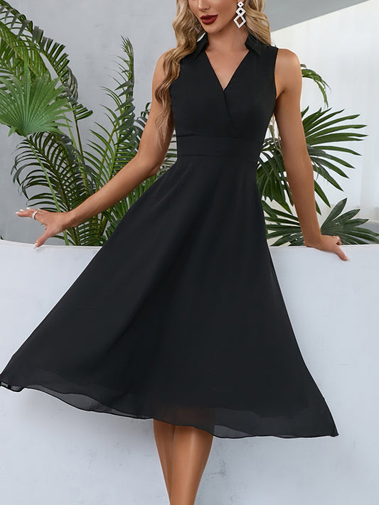 White Floral Classic V Neck Sleeveless A-Line Midi Dress