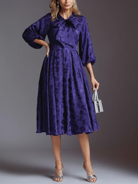 V-Neck Lace Long-Sleeved Solid Color Maxi Dress
