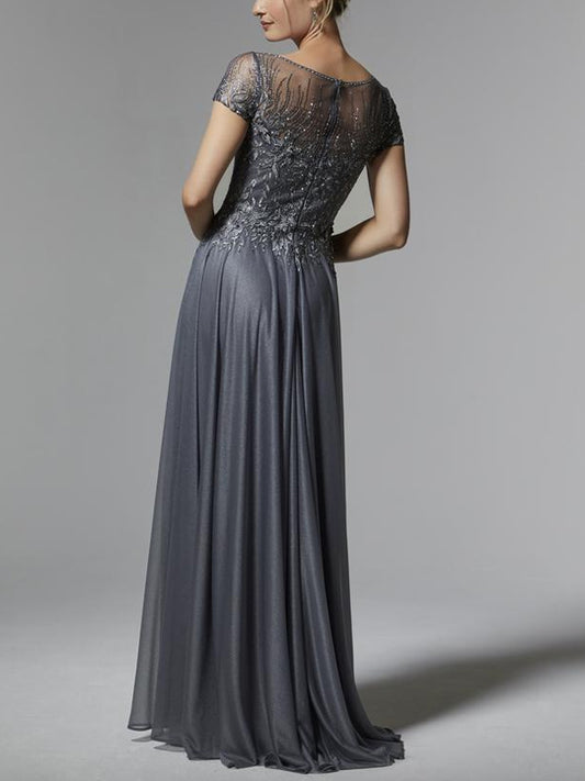 Round Neck Lace Chiffon Short Sleeves Maxi Dress