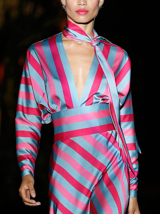 Casual And Comfortable Temperament Striped Dress Two-piece Suit