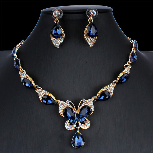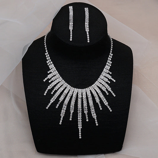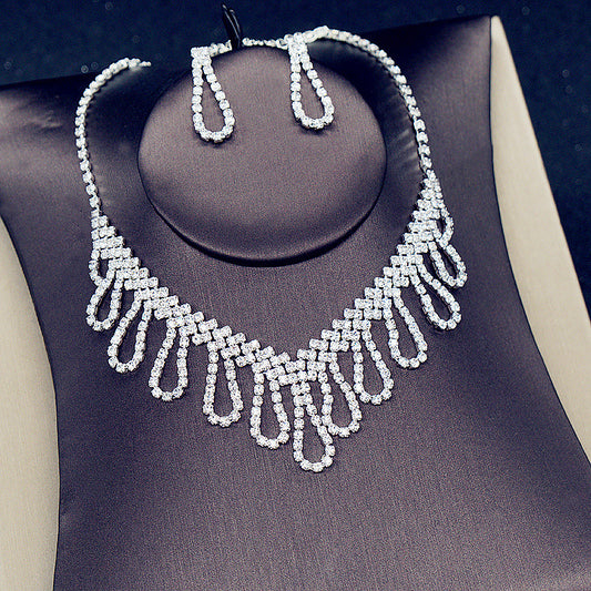 necklace and earrings two-piece set with rhinestones