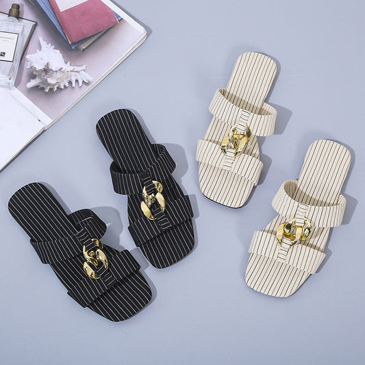 Women'S Fashion Rivet Chic Chain Slippers