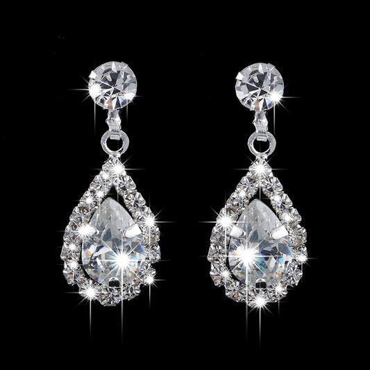 Waterdrop Set Shiny Zircon Necklace Earring Set