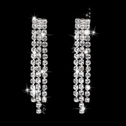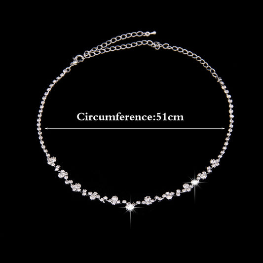 Simple Bright Rhinestone Zircon Necklace and Earrings Set