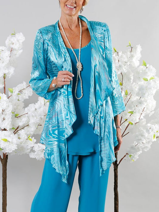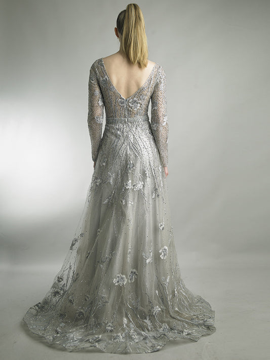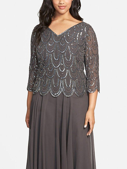 Grey Blue Sparkly Beaded Chiffon Mother of the Bride Dress
