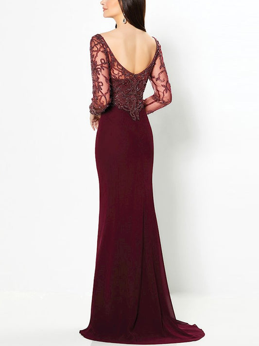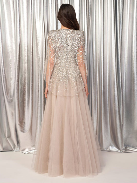 Round Neck Mesh Long Sleeves Sequins Maxi Dress