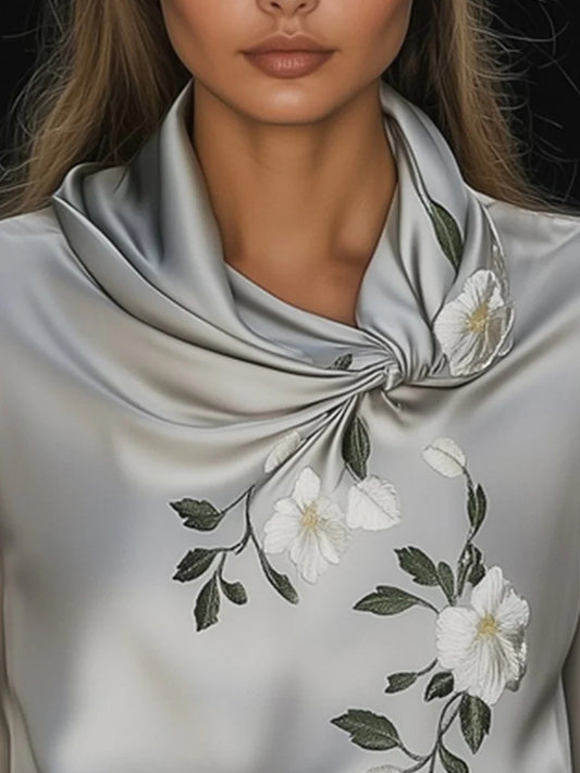 Shirt Collar Temperament Chiffon Floral Ladies Dress