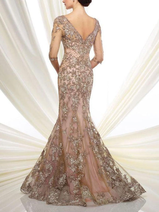Sheath/Column Sweetheart Short Sleeves Floor-Length Mother of the Bride Dresses with Appliques Lace