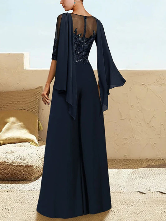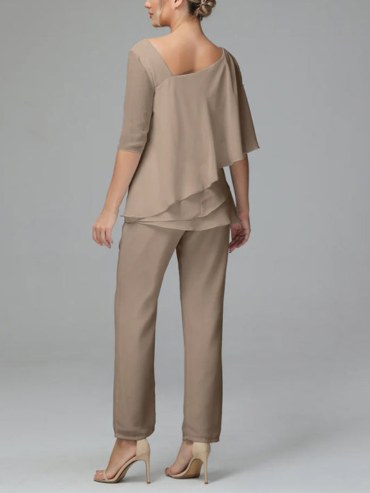 Half Sleeve Chiffon Mother of the Bride Dress Pants Suit