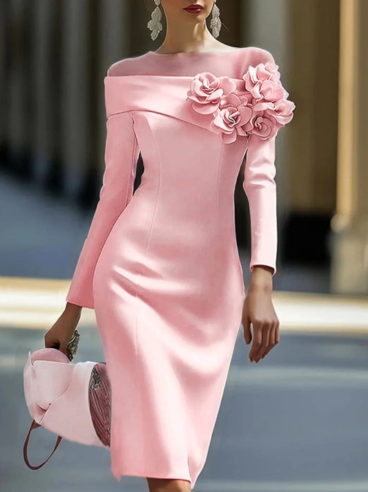 Elegant 3D Floral Crew Neck Formal Dress
