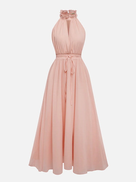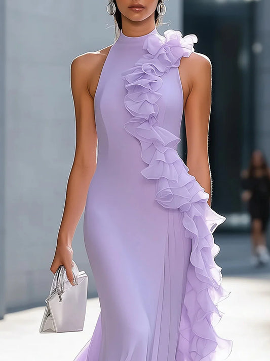 Scramble Chiffon Lotus Leaf Collar Sleeveless A-Line Maxi Dress