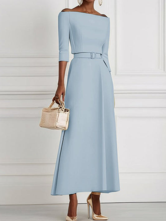 Classic Off The Shoulder Half Sleeve A-Line Maxi Dress