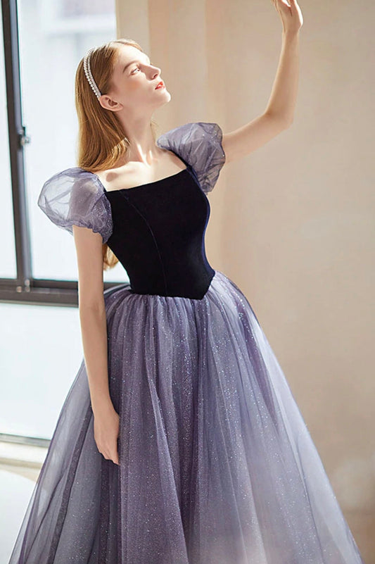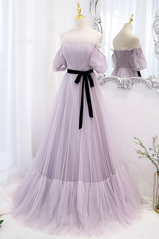 Purple Tulle Long A-Line Prom Dress, Cute Purple Evening Party Dress
