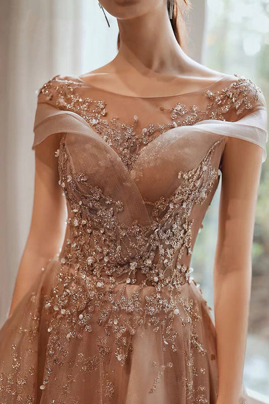 Beautiful Tulle Sequins Long Prom Dress, A-Line Evening Dress