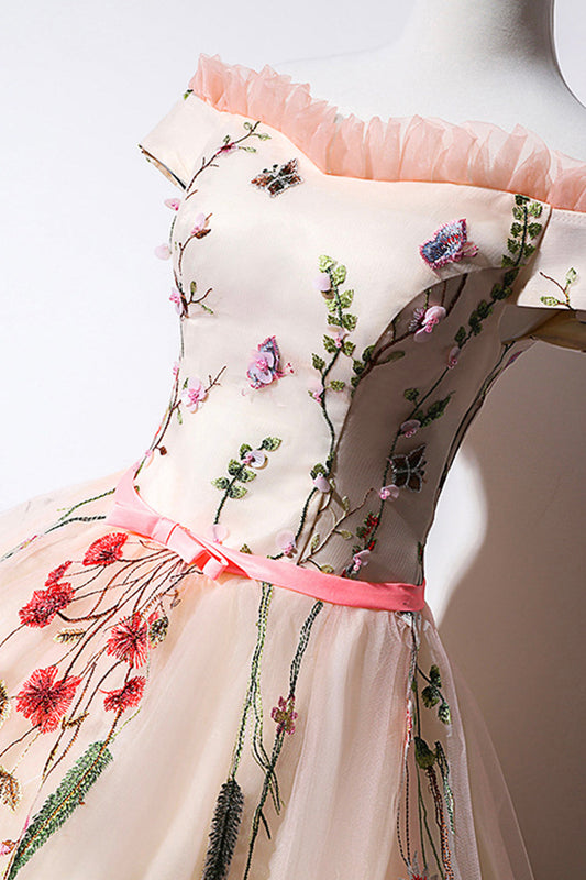 Cute Tulle Lace Long Formal Dress, A-Line Off Shoulder Party Dress