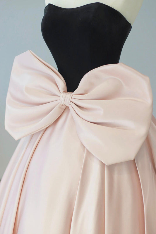 Black Velvet and Pink Satin Floor Length Prom Dress, Beautiful Strapless Evening Party Dress