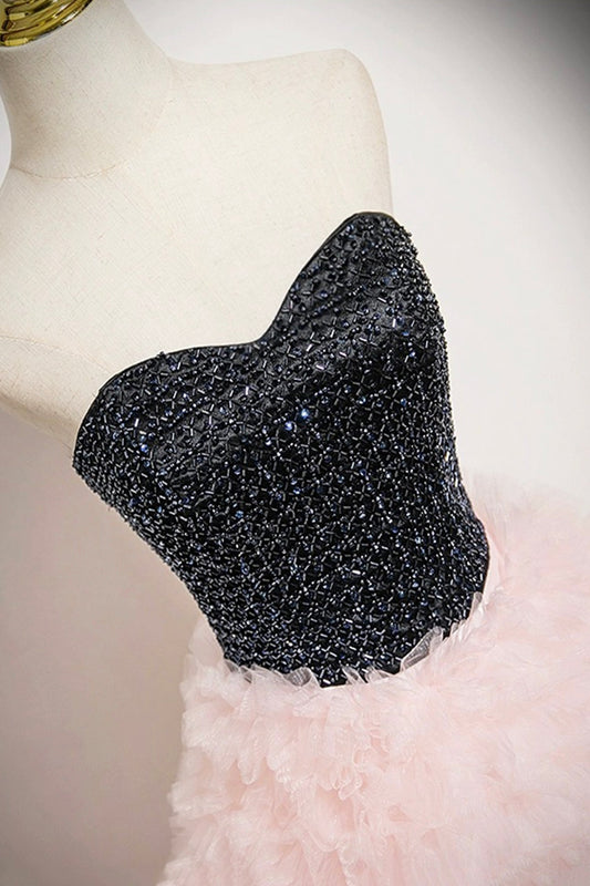 Ball Gown Black Layered Tulle Prom Dress, A-Line Strapless Long Evening Party Dress