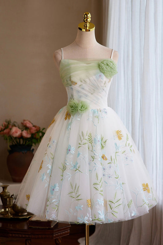 White Tulle Floral Short Prom Dress, Beautiful A-Line Homecoming Party Dress