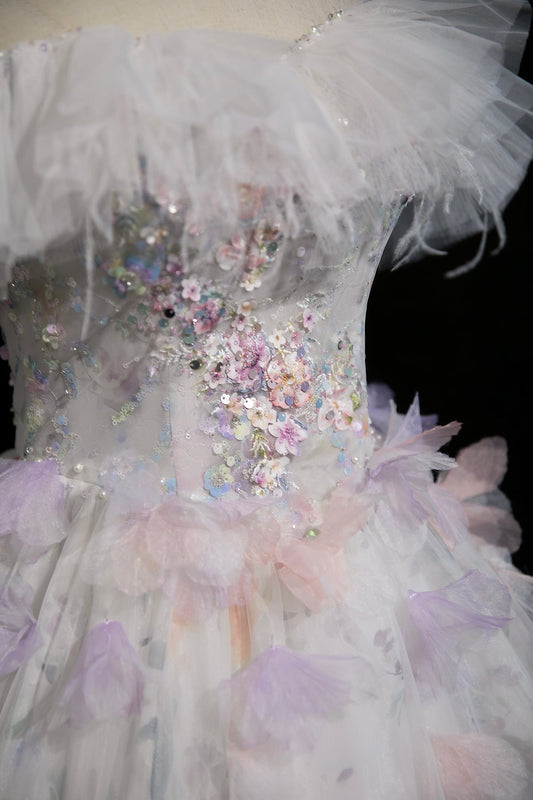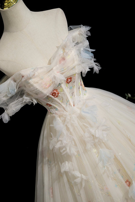 Beautiful Tulle Floral Long Prom Dress, A-Line Off the Shoulder Party Dress